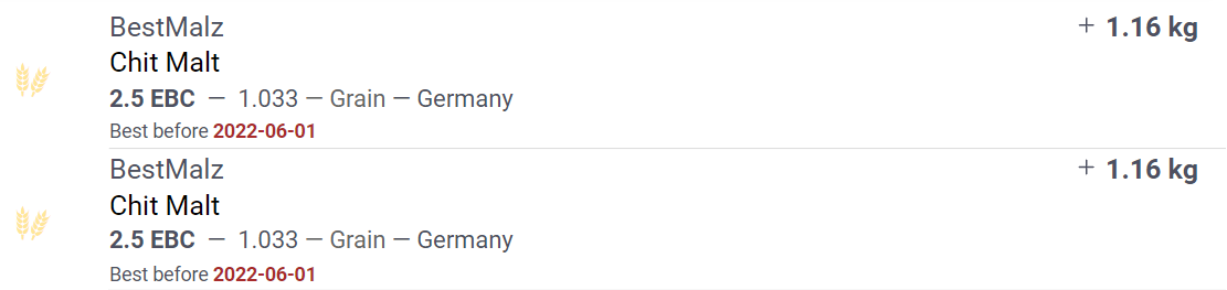 To track different batches of the same ingredient, you can create multiple entries for it. To do this, click on the ingredient you want to record multiple batches of, then click on the Copy <img src="https://771697612-files.gitbook.io/~/files/v0/b/gitbook-x-prod.appspot.com/o/spaces%2F-LEzhWP2LGeXaKgS2qr4-887967055%2Fuploads%2FjqV0svPxOdmIfVlL8UyY%2Fcopy_button.png?alt=media&#x26;token=19570de5-9a28-48b3-b695-d5aeff20f9ec" alt="" data-size="line"> button. This will then take you back to your inventory screen and you will see 2 copies of the ingredient you just copied